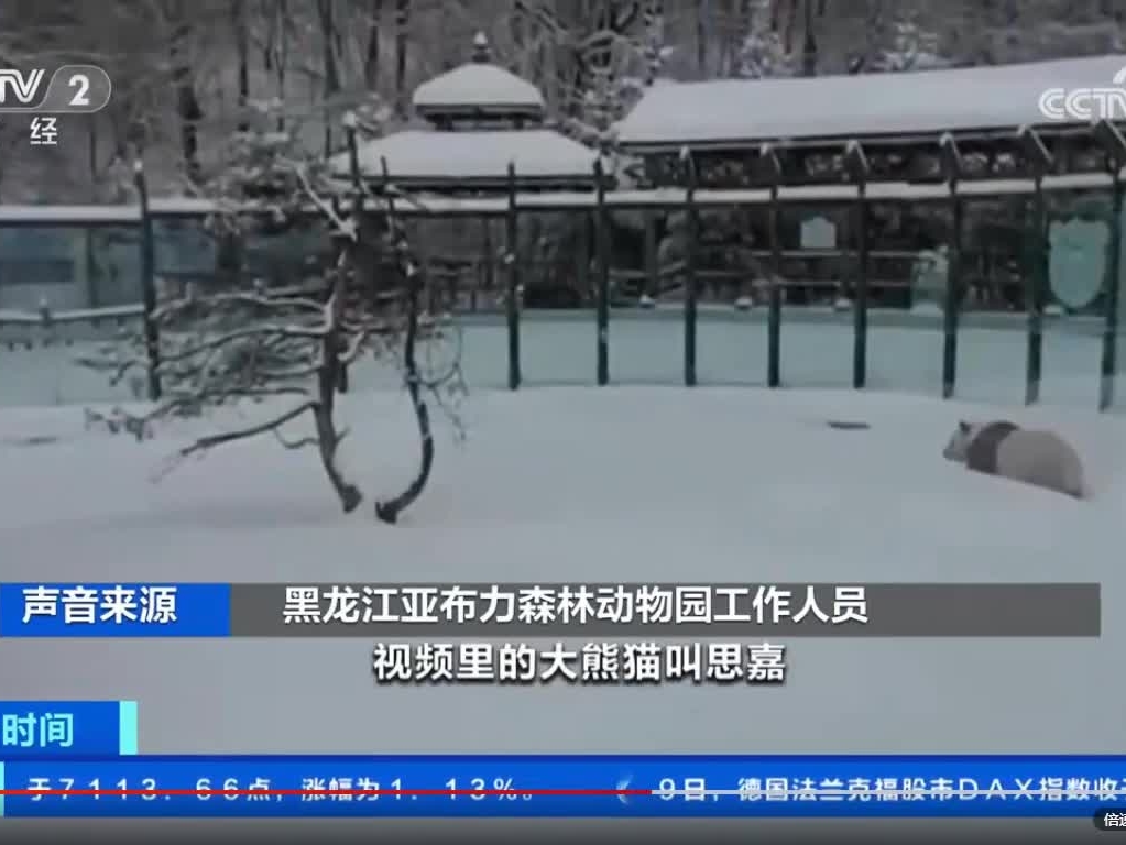 黑龍江:大熊貓雪中嬉戲撒歡