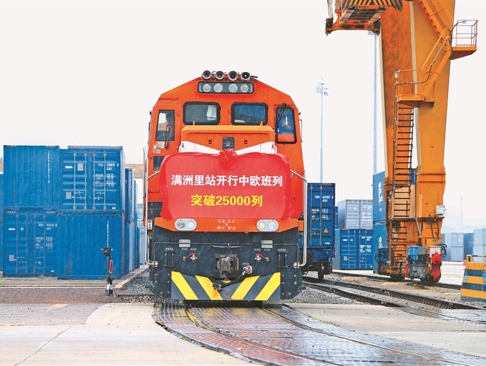 滿洲里鐵路口岸通行中歐班列突破25000列