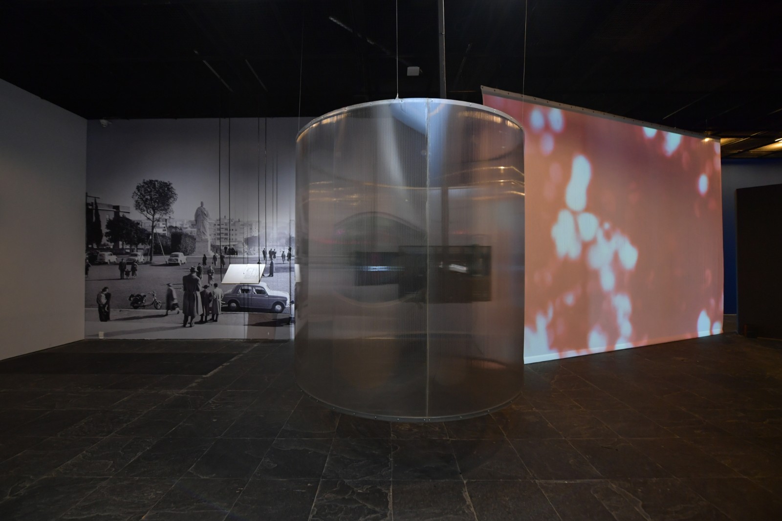 臺(tái)階的最上方引導(dǎo)著觀眾走向迷宮的“出口”——那是一個(gè)陽(yáng)臺(tái),它被認(rèn)為跨越了私人領(lǐng)域和公共領(lǐng)域之間的那條不甚明晰的界限。人們?cè)诘巧详?yáng)臺(tái)的那一瞬間,目之所及的是胡偉呈現(xiàn)的“廣場(chǎng)”。在《為公共口口(邂逅),提案》中,胡偉對(duì)自己家鄉(xiāng)的廣場(chǎng)進(jìn)行了調(diào)研,廣場(chǎng)中心紀(jì)念碑雕塑的拆除背后是對(duì)一段宏觀歷史的回顧,展柜中陳列的文獻(xiàn)材料,3D打印復(fù)原的紀(jì)念碑與噴泉,都以一種最傳統(tǒng)的方式印證著這段歷史的發(fā)生與存在。而在面向陽(yáng)臺(tái)的視頻圖像語(yǔ)境中,胡偉通過(guò)鏡頭的聚焦切換與角度變化,在宏觀的歷史背景外,其似乎在試圖提煉除一種模糊的普遍性,其適用于廣泛的公共空間與集體記憶,卻與人們的個(gè)體記憶都有不謀而合之處,但又難以捕捉,“沒(méi)有面目,也無(wú)人認(rèn)領(lǐng)”。