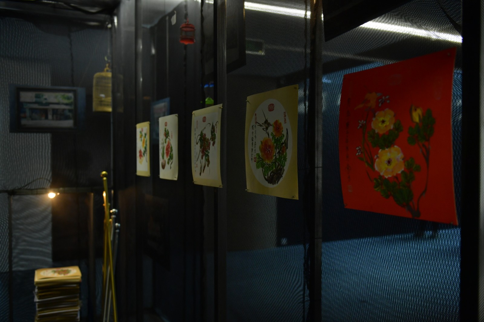 有趣的是,在陳淑瑜與未建筑設(shè)計(jì)研究所共同設(shè)計(jì)的“迷宮”裝置中,陳淑瑜以策展的方式又介入了耶丁的這段創(chuàng)作經(jīng)歷中。進(jìn)入暗室中的迷宮,觀眾沿著旋轉(zhuǎn)的樓梯向上前行,一路遇到的老照片,帶有時(shí)代氣息的畫(huà)作,被置于凹陷空間深處的視頻,以及需要置身于“洞穴”中去傾聽(tīng)的獨(dú)白,都昭示著一種極強(qiáng)的私密性,在不見(jiàn)光亮的迷宮中,人們?cè)讵M窄而形態(tài)怪誕的通道中甚至無(wú)法錯(cuò)開(kāi)身來(lái),被迫與他人“分享”私密。
