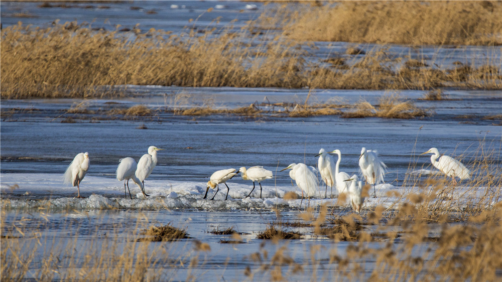 候鳥(niǎo)在保護(hù)區(qū)休憩