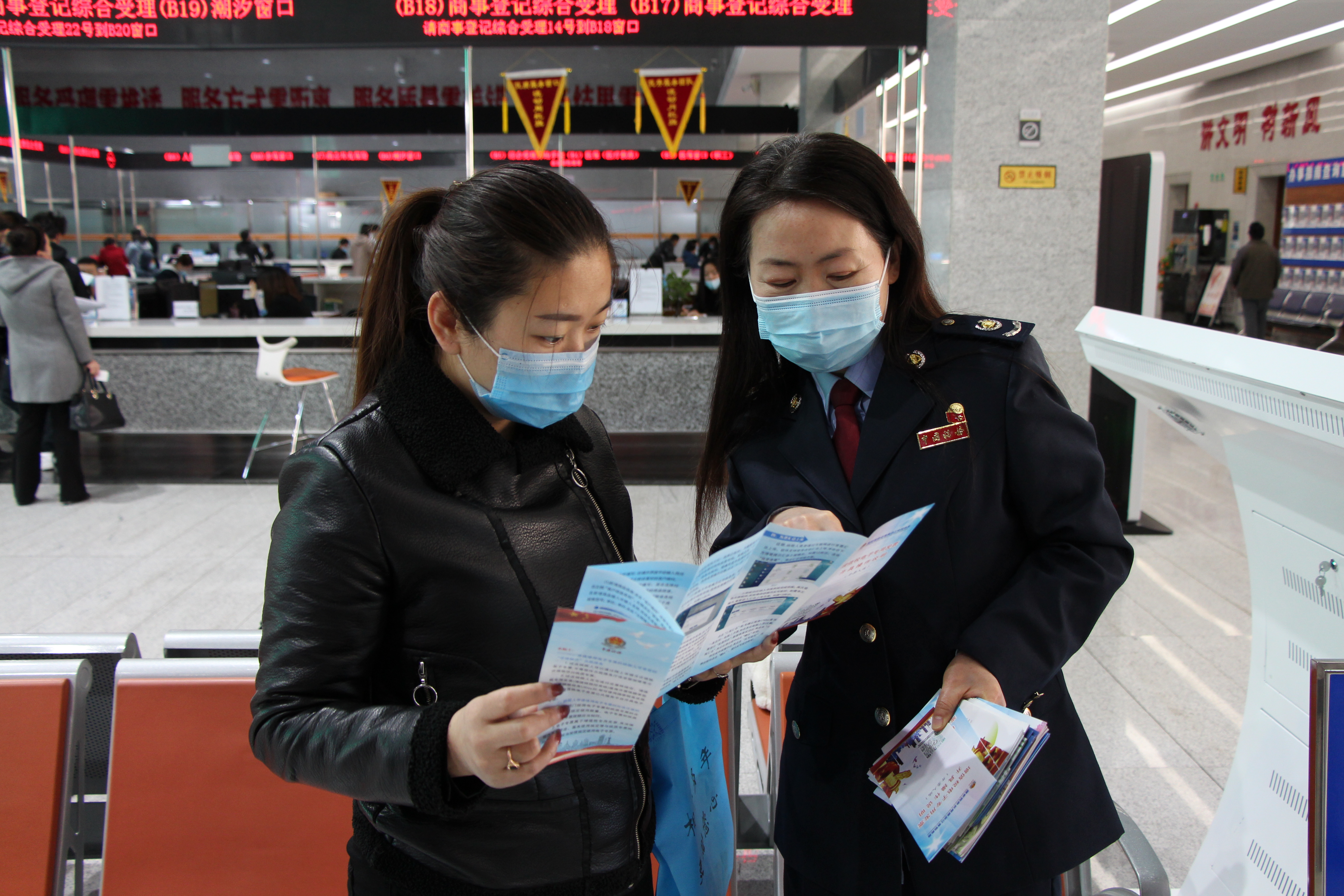 稅務(wù)干部向納稅人介紹稅收政策