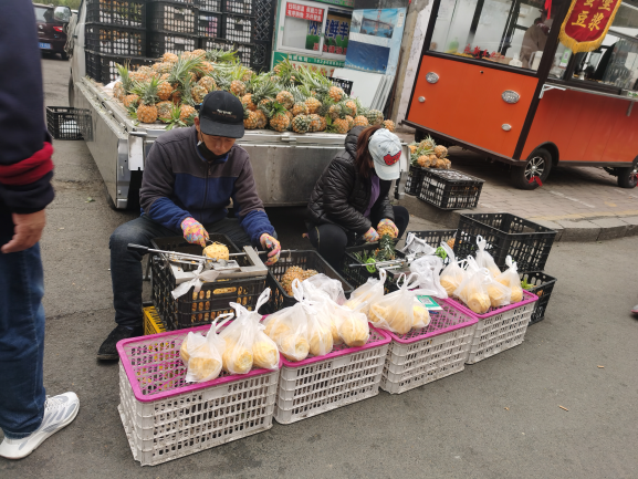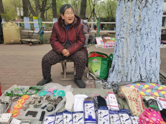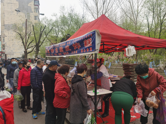 早市的吸引力在于“看”。早市上,各攤主會(huì)想各種各樣的方式招攬顧客,有的會(huì)用廣告牌,有的會(huì)吆喝。早市上的商業(yè)運(yùn)作方式也非常有趣,比如現(xiàn)場擠羊奶,旁邊拴幾頭奶羊,當(dāng)招牌;賣刀切面的現(xiàn)場切,炸油條的現(xiàn)場炸,都是明檔手工,這幾乎是大多數(shù)早市商家的促銷手段。也有推銷老花鏡的,賣衣服的,會(huì)現(xiàn)場吆喝“正宗商品專柜,清倉促銷”——這大概是現(xiàn)在“直播帶貨”的線下模式。住在早市附近的居民,有的會(huì)在樓上用繩子吊下個(gè)籃子,讓攤主把東西放到籃子里,直接拽上去。