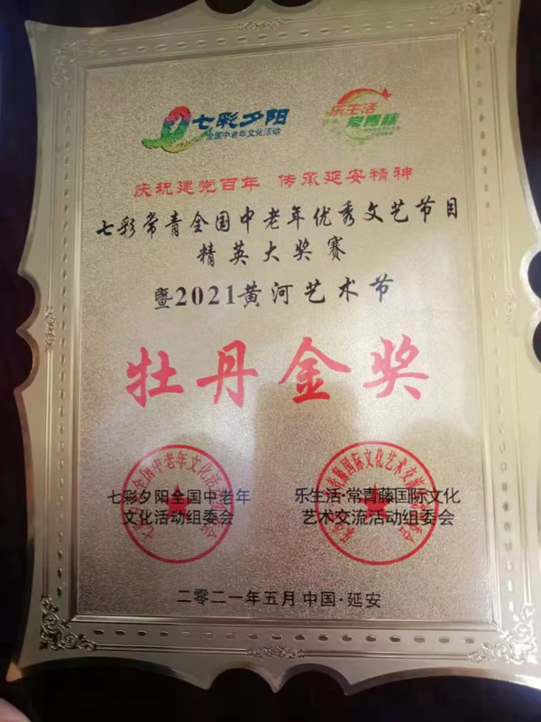 5月15日,塔河森林之聲合唱團(tuán)應(yīng)邀參加了全國老齡委在陜西延安舉辦的“慶祝建黨百年·傳承延安精神”全國中老年優(yōu)秀文藝節(jié)目精英大獎賽暨2021年黃河藝術(shù)節(jié),并榮獲牡丹金獎(最高獎項)和優(yōu)秀組織獎。