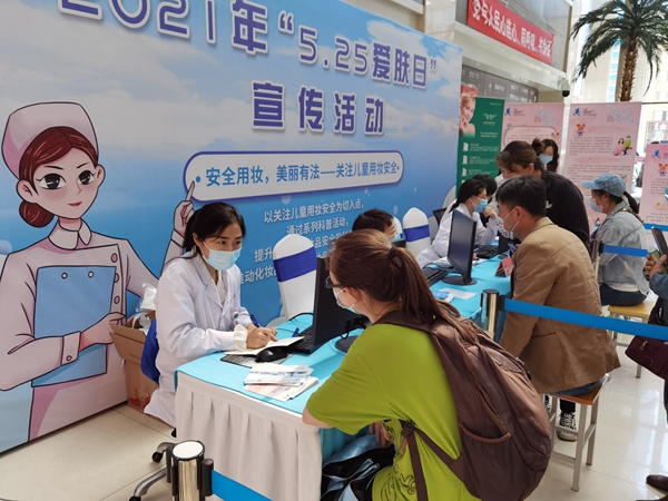 本次“5·25愛膚日”科普宣傳系列活動的主題為“安全用妝,美麗有法——關(guān)注兒童用妝安全”。以關(guān)注兒童用妝安全為切入點,宣傳普及化妝品安全、化妝品不良反應(yīng)監(jiān)測知識;發(fā)放宣傳單(冊);現(xiàn)場咨詢答疑、義診;設(shè)置宣傳板展示等形式,提升公眾對化妝品安全的科學(xué)認知,推動化妝品監(jiān)測深入開展。