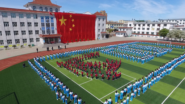 童心永向黨、歡歌慶六一,呼瑪縣第一小學(xué)的操場上,由全校600余名師生共同組成黨徽、100的造型圖案,在四層樓高的巨幅國旗映襯下,蔚為壯觀,一面面小紅旗在學(xué)生們手中揮舞,師生們懷著崇敬的心情,共同演唱《沒有共產(chǎn)黨就沒有新中國》。氣勢磅礴的開場節(jié)目,表達(dá)了呼瑪縣廣大師生學(xué)黨史、頌黨恩、跟黨走,隆重慶祝建黨100周年的激動心情。