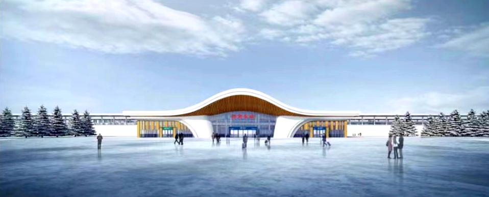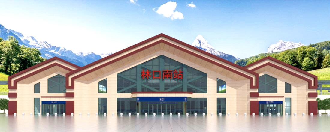 林口南站建筑面積2998.19平方米,可容納800旅客候車。設(shè)2條正線,2條到發(fā)線,站房外觀設(shè)計(jì)如同“林中木屋”,融入林口縣特有的“山水神秀”文化底蘊(yùn),給人以厚重堅(jiān)實(shí)之感,并將英雄之城的紅色文化融入其中,象征城市精神如山巒屹立。兩側(cè)較小體塊烘托中部門式造型,窗格構(gòu)件相互交織,如森林霧凇,體現(xiàn)寒冷地區(qū)建筑特質(zhì),具有雪原建筑意向。車站穩(wěn)重大氣、簡(jiǎn)潔壯麗,通過(guò)現(xiàn)代建筑語(yǔ)言詮釋了站房的人文之靈,彰顯現(xiàn)代交通建筑特征。