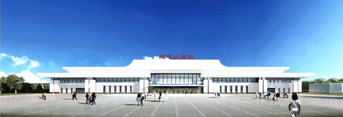 雙鴨山西站建筑面積9997.9平方米,設(shè)2條正線,3條到發(fā)線。以“農(nóng)林盛地,昂揚(yáng)煤城,融匯文脈,合于自然”為設(shè)計(jì)理念。建筑形體通過(guò)極強(qiáng)的橫向?qū)哟危尸F(xiàn)向中心聚集的趨勢(shì),中心高兩側(cè)低類似于山脈的建筑天際線與橫向線條結(jié)合給人以綿延不絕的感覺(jué),寓意城市文化及歷史如山如水般源遠(yuǎn)流長(zhǎng)。建筑整體造型著重體現(xiàn)雙鴨山市的煤城特色和豐富的農(nóng)林資源,其煤炭相關(guān)產(chǎn)業(yè)一直作為城市建設(shè)發(fā)展的重要支柱,建筑主立面采用四根厚重有力的支撐柱,以表現(xiàn)這一理念,同時(shí)深入挖掘并體現(xiàn)雙鴨山市特有的文脈及自然特色。