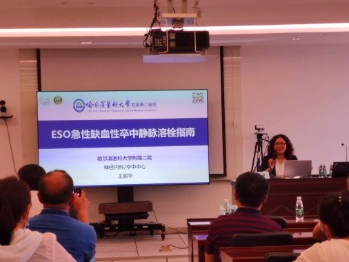 大會同時邀請到中國卒中??坡?lián)盟副主席、中國卒中中心管理指導(dǎo)委員會秘書長、哈爾濱醫(yī)科大學(xué)附屬第二醫(yī)院王麗華教授為大家?guī)砹恕禘SO急性缺血性卒中靜脈溶栓指南(2021)》,聚焦國際前沿。卒中中心秘書齊丹則以詳實的數(shù)據(jù)仔細(xì)分析了近兩年來中心的質(zhì)控工作,指出中心診療和流程的不足,為中心精細(xì)化管理提供了指導(dǎo)和依據(jù)。