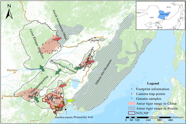 該研究歷時(shí)6年,覆蓋我國所有東北虎分布的棲息地景觀斑塊,累計(jì)布設(shè)自動(dòng)相機(jī)約2400臺,總監(jiān)測時(shí)長約220多萬天;完成5 km長的雪地調(diào)查樣線662條;收集東北虎糞便遺傳樣本146份,足跡、捕食痕跡等其他有效信息122條,同時(shí)收集了所有有蹄類獵物的分布數(shù)據(jù),進(jìn)行綜合分析。