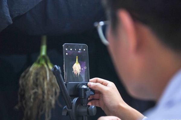 8月2日,在吉林省梨樹縣四棵樹鄉(xiāng)三棵樹村“科技小院”,中國農(nóng)業(yè)大學博士研究生沙野給玉米根系樣本拍照。