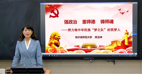 據(jù)了解,本次活動是黑龍江省教育廳慶祝第37個教師節(jié)的系列活動之一,由哈爾濱師范大學(xué)協(xié)辦、全國中小學(xué)繼續(xù)教育網(wǎng)技術(shù)支持舉辦?;顒右浴百s續(xù)百年初心,擔(dān)當(dāng)育人使命”為主題,由哈爾濱師范大學(xué)馬克思主義學(xué)院熊玉坤副教授講授題為《強政治、重師德、鑄師魂——努力做中華民族“夢之隊”的筑夢人》的思政課。課程圍繞提升教師思想政治素質(zhì)和師德水平、更好擔(dān)負起立德樹人根本任務(wù)展開,分為新時代加強和改進師德師風(fēng)建設(shè)的政治要求、新時代師德師風(fēng)建設(shè)的豐富內(nèi)涵、新時代強化師德師風(fēng)建設(shè)的對策思考三個部分,系統(tǒng)回答了新時代中小學(xué)教師思想政治和師德師風(fēng)建設(shè)為什么、是什么、怎么做的問題。