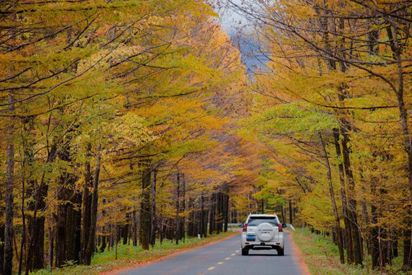 駕車行駛在有著最美公路之稱的伊春烏帶公路,打開車窗,攬一縷秋風入懷,夾道的金色森林觸手可及,晃動著與人們打著招呼。