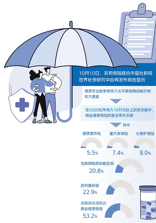 中國社會(huì)科學(xué)院保險(xiǎn)與經(jīng)濟(jì)發(fā)展研究中心副主任王向楠在接受經(jīng)濟(jì)日報(bào)記者采訪時(shí)表示,全面建成小康社會(huì)后,居民對身體健康和醫(yī)療服務(wù)的需求進(jìn)一步增強(qiáng),而在我國醫(yī)療衛(wèi)生總費(fèi)用中,居民自付部分保持在高位,所以居民對提升醫(yī)保水平的需求更迫切,商業(yè)保險(xiǎn)可基于醫(yī)保推出更高水平的保障。與此同時(shí),隨著人口老齡化深入,各類帶病人群增多,他們對養(yǎng)老和醫(yī)療在保障資金、物品和服務(wù)上均有需求,這為保險(xiǎn)業(yè)發(fā)展綜合性健康險(xiǎn)產(chǎn)品創(chuàng)造了空間。