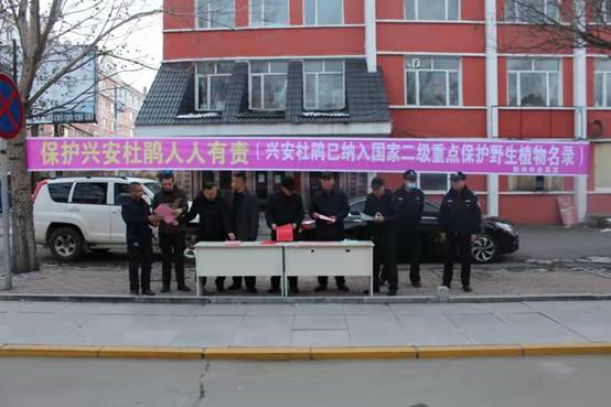 會(huì)后,所有與會(huì)人員參加了由森林資源管理科舉辦的“保護(hù)野生興安杜鵑人人有責(zé)”宣傳活動(dòng),對(duì)快遞公司、山產(chǎn)品店、檢查站、配貨站、市場(chǎng)及過(guò)往車(chē)輛進(jìn)行宣傳,并呼吁經(jīng)營(yíng)業(yè)主參與到保護(hù)野生興安杜鵑行動(dòng)中來(lái),不收購(gòu)、不運(yùn)輸、不銷(xiāo)售野生興安杜鵑,堅(jiān)決把牢物流運(yùn)輸關(guān)口。