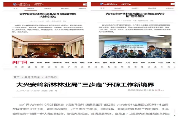 提高宣傳質(zhì)量確保形成濃厚氛圍。將解放思想大討論活動與黨史學(xué)習(xí)教育緊密結(jié)合起來、與慶祝建黨100周年系列活動結(jié)合起來、與深化國有林區(qū)轉(zhuǎn)型發(fā)展結(jié)合起來、與推動全局各項重點工作結(jié)合起來,利用“新林林業(yè)局”微信公眾號、微信群、LED顯示屏等多種形式廣泛宣傳開展黨史學(xué)習(xí)教育、解放思想大討論活動的重要意義,發(fā)動全局黨員干部積極參與大討論活動,在全社會營造良好的輿論氛圍,確保大討論活動有序開展、順利推進(jìn)。截至目前,解放思想大討論活動在央廣網(wǎng)、中國縣域經(jīng)濟(jì)報網(wǎng)、黑龍江經(jīng)濟(jì)網(wǎng)、大興安嶺集團(tuán)公司等媒體網(wǎng)絡(luò)發(fā)表文章5篇,林業(yè)局公眾號發(fā)稿8篇,基層動態(tài)10篇,自編簡報4期。