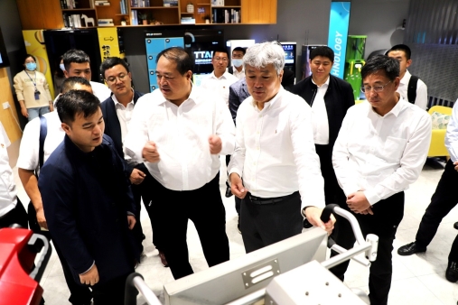 考察團一行在景域驢媽媽集團文化體驗中心、旅游科技體驗館、智慧景區(qū)展廳三個展廳,在景域驢媽媽集團助理總裁國慶華、景域驢媽媽集團北部大區(qū)商業(yè)總監(jiān)李玲、景域景區(qū)投資運營集團品牌運營中心高級總監(jiān)陸玉敏三位高管的引導(dǎo)下,看圖片、觀專題片、聽介紹,詳細(xì)了解了旅游與科技、數(shù)字應(yīng)用,以及黨的建設(shè)、企業(yè)文化、所獲榮譽等發(fā)展與創(chuàng)新歷程,對“誠信、激情、創(chuàng)新、多贏”八字理念留下了深刻印象??疾靾F成員親身體驗了云鏡、VR、掃碼存取、掃碼騎車、智能拍照機、紀(jì)念章售賣機、文創(chuàng)自動售貨機、旅行洗漱用品套裝自助機、智能導(dǎo)游機等科旅融合設(shè)備,仔細(xì)聆聽了集數(shù)據(jù)中心、電子門票、運行監(jiān)控、密度檢測等為一體的智慧景區(qū)平臺應(yīng)用方面的介紹情況。