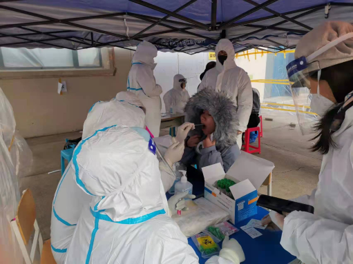 “您好,請摘下口罩……”“啊~張嘴,頭不要太往后仰”。同樣的話語、重復(fù)的動作,正是采集點(diǎn)醫(yī)護(hù)人員反復(fù)在做的工作。每完成一組采樣后,醫(yī)護(hù)人員都會進(jìn)行手消毒,并按要求將樣本封存。此刻,大家都有一個(gè)共同的目標(biāo):圓滿完成核酸采集任務(wù),為這座城市保駕護(hù)航。