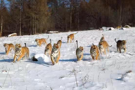 令人震撼的鏡泊湖吊水樓的冰瀑是牡丹江冬季的重要景點之一。在冰凌交錯、銀裝素裹的純凈世界里,世界吉尼斯紀(jì)錄創(chuàng)造者——中國懸崖跳水奇人狄煥然,在零下二十多度的鏡泊湖吊水樓冰瀑上,伸展雙臂,凌空一躍,撲向不結(jié)冰的黑龍?zhí)端?,跳入落差?0米的水中,成為鏡泊湖景區(qū)冬季的一道獨(dú)特景觀。鏡泊湖水系水質(zhì)較好,水產(chǎn)資源極為豐富,大約有六十多種魚,冬季體驗鏡泊湖的大網(wǎng)捕魚、小網(wǎng)掛魚,在每年辭舊迎新之際看一場冬捕,絕對是預(yù)示著年年有余好兆頭的絕佳體驗。在漁夫們高亢的號子聲中,800多米長的大網(wǎng)從冰洞中漸漸滑出,胖頭魚、鯽魚、鯉魚等翻滾著、跳躍著,冒著熱氣蹦到冰面,“萬尾鮮魚出玉門”的奇觀景象讓人感嘆不已。橫道東北虎林園是世界上最大的東北虎人工飼養(yǎng)繁育基地和野化訓(xùn)練基地。在幾代養(yǎng)虎人的辛勤努力下,已繁育活體東北虎1100余只,建有猛虎園、靈長類館、幼虎生態(tài)館、高空玻璃棧道、珍稀動物觀賞園、科普展覽館、觀虎長廊、虎文化廣場等多個景點。在這里,可以感受到獸中之王奔跑在蒼茫林海雪原的風(fēng)馳電掣。也可以感受到成群東北虎躺臥在皚皚白雪“互談心事”的百般愜意,還可以領(lǐng)略到虎牛相斗、群虎撲食的驚險刺激。