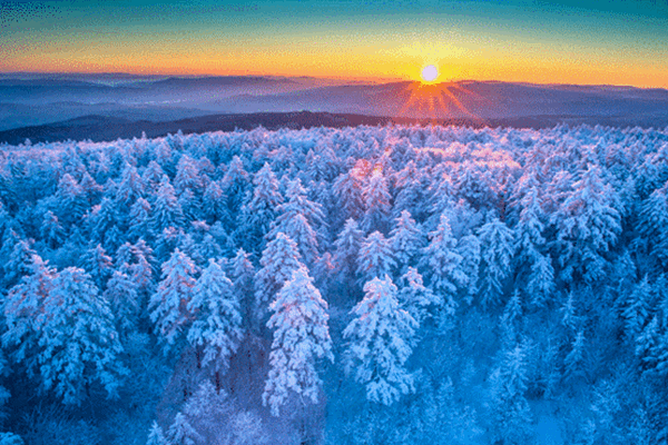 伊春擁有400萬(wàn)公頃的浩瀚森林,高達(dá)83.8%的森林覆蓋率,交相輝映的茫茫林海與皚皚白雪,萬(wàn)里冰封、壯美遼闊的小興安嶺,構(gòu)成了這個(gè)冬天最浩瀚壯美的景色。夏季的天然氧吧,在冬季化為了冰雪童話世界。大雪過(guò)后,五營(yíng)國(guó)家森林公園之中,千樹(shù)萬(wàn)樹(shù)猶如梨花盛開(kāi),描繪著冬日的醉人景象。