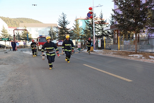 阿木爾公安城鎮(zhèn)消防大隊戰(zhàn)斗員演練雙干線三支水槍
