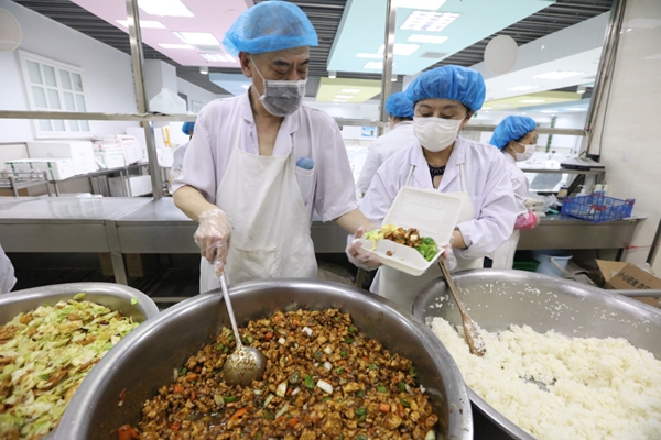 消化內(nèi)科16個(gè)月大的患兒浩浩是過(guò)敏體質(zhì),因發(fā)熱、腹瀉、進(jìn)食后嘔吐住院治療,這個(gè)孩子既往過(guò)敏原檢查對(duì)大米、西紅柿、雞蛋等多種食物過(guò)敏,所以食堂針對(duì)這個(gè)孩子飲食單獨(dú)配餐,主食以小麥類(lèi)饅頭等為主,蔬菜以在家經(jīng)常食用的菜類(lèi)制作,保證患兒的營(yíng)養(yǎng)進(jìn)食。據(jù)了解,哈爾濱醫(yī)科大學(xué)附屬哈爾濱兒童醫(yī)院全力保障300多名住院患兒以及陪護(hù)家屬的一日三餐飲食。每天患兒家長(zhǎng)通過(guò)住院患者訂餐系統(tǒng)平臺(tái)網(wǎng)上自助訂餐,食堂配餐送到病房。鞠樹(shù)斌介紹,食堂每天負(fù)責(zé)醫(yī)院職工和患者及陪護(hù)家屬800多人次的一日三餐,在崗的25名工作人員,每天從3時(shí)開(kāi)始準(zhǔn)備早餐,8時(shí)制作午餐,14時(shí)又開(kāi)始做晚餐。工作雖然忙碌,但卻覺(jué)得自己的努力能讓患者們?cè)谧≡浩陂g吃得安心、舒心,又覺(jué)得自己價(jià)值感滿滿。