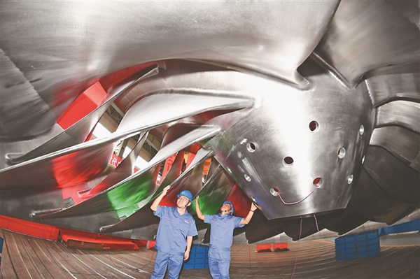 哈電集團研制的世界首臺長短葉片1000MW白鶴灘精品轉輪。圖片由受訪單位提供
