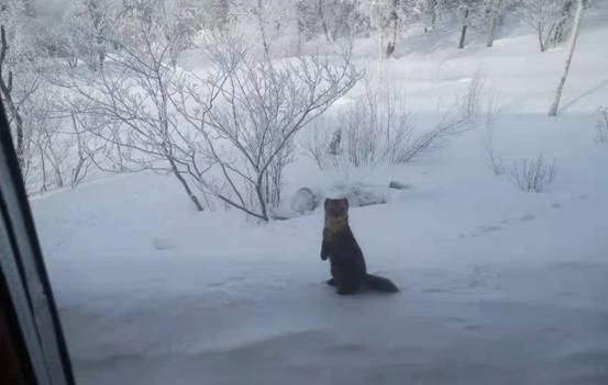 “冰雪畫廊”工作人員介紹,“紫貂只在天氣暖和或者雪不是很大時才會出現(xiàn),這幾天天氣回暖,紫貂出現(xiàn)的相對頻繁一些。雖然投喂了火腿腸,但是它們很警覺,要等人離開很久,才會靠近食物。”