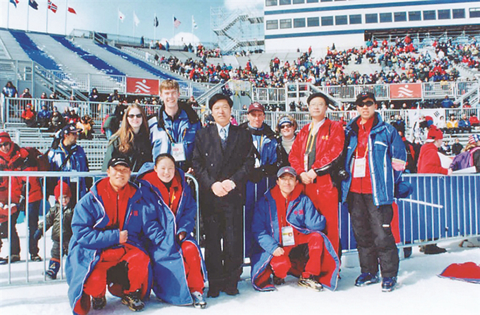 2002年我國首次派團(tuán)參加冬殘奧會(huì),圖為代表團(tuán)成員與志愿者合影。