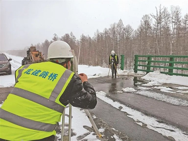 嘉湯公路起于伊春市嘉蔭口岸、止于湯旺縣,路線全長(zhǎng)94.286公里,設(shè)計(jì)時(shí)速80公里,按照雙向四車道一級(jí)公路技術(shù)標(biāo)準(zhǔn)進(jìn)行改擴(kuò)建。由于公路地處高寒地區(qū),原公路涉及長(zhǎng)距離的多年凍土路段,多處凍土深度達(dá)到20多米,直至巖層?!盀榱丝朔鐾谅范魏笃谌诔?,我們采取了兩個(gè)辦法。針對(duì)不太深的凍土層,先挖除凍土,后續(xù)再換填砂礫或片石處理,沉降一年后再進(jìn)行路面施工;針對(duì)凍土層較深的路段,我們采取‘以橋代路’方式跨越凍土帶。”國(guó)道嘉蔭至湯旺河段公路改擴(kuò)建工程建設(shè)指揮部副指揮馮昌龍介紹說(shuō)。