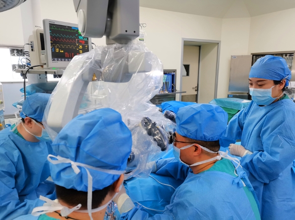 檢查結(jié)果出來后,孫國章主任醫(yī)師建議王女士行右側(cè)顳葉占位切除并行病理檢查。與家屬詳細(xì)交代手術(shù)的必要性及相關(guān)風(fēng)險,患者家屬表示知情同意行手術(shù)治療。術(shù)前準(zhǔn)備完畢后,孫國章主任醫(yī)師為王女士在全麻下進(jìn)行了右側(cè)顳葉占位切除+血腫清除術(shù),術(shù)中孫國章主任醫(yī)師在顯微鏡下仔細(xì)分離腫瘤組織與腦組織邊界,將腫瘤組織全切并將血腫全部清除,手術(shù)過程順利。王女士術(shù)后恢復(fù)良好,頭部CT復(fù)查顯示腫瘤完全切除,血腫清除徹底,病理回報為腦膠質(zhì)母細(xì)胞瘤,現(xiàn)已出院準(zhǔn)備進(jìn)行放化療等下一步綜合治療。