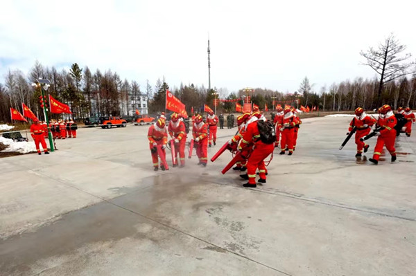 隨后,學(xué)習(xí)觀摩團(tuán)先后來到韓家園林業(yè)局森林消防二大隊(duì)靠前駐防營地、森林消防一大隊(duì)營部進(jìn)行了實(shí)地觀摩,認(rèn)真觀看了二大隊(duì)獵鷹索降特勤分隊(duì)的模擬空中索降實(shí)戰(zhàn)演練和撲火戰(zhàn)術(shù)演練;森林消防一大隊(duì)鰲龍以水滅火特戰(zhàn)中隊(duì)的實(shí)戰(zhàn)演練。