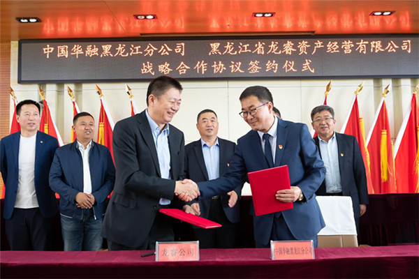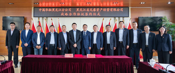 龍睿公司黨委書記、董事長、總經(jīng)理鄶曉龍,中國華融黑龍江分公司黨委書記、總經(jīng)理所東斌代表雙方簽訂協(xié)議。龍睿公司副總經(jīng)理、總會計師王貴軍,董事會秘書、總經(jīng)理助理陳良謙,中國華融黑龍江分公司副總經(jīng)理王新潮、風險總監(jiān)田榮成及雙方相關(guān)部門負責人參加了簽約儀式。