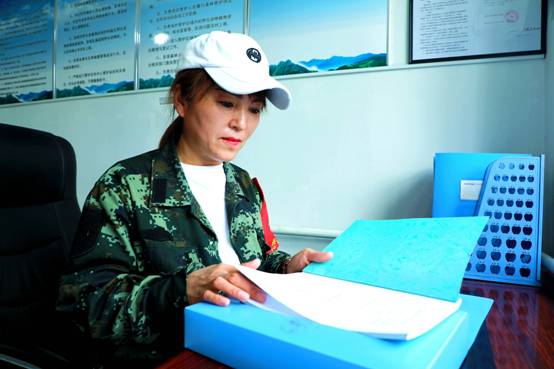 阿木爾林業(yè)局長(zhǎng)山林場(chǎng)1—0—1—2線管護(hù)站有水有電有手機(jī)信號(hào),管護(hù)員趙娣在干凈舒適的工作環(huán)境整理防火內(nèi)業(yè)(王力 攝)