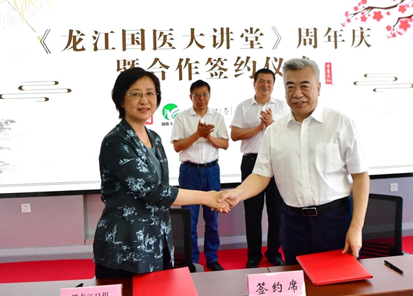 活動(dòng)現(xiàn)場(chǎng),黑龍江日?qǐng)?bào)報(bào)業(yè)集團(tuán)分別與黑龍江省中醫(yī)藥管理局、黑龍江省中醫(yī)藥科學(xué)院進(jìn)行了合作簽約。省中醫(yī)藥管理局黨組書(shū)記、局長(zhǎng)張曉峰說(shuō):黑龍江日?qǐng)?bào)報(bào)業(yè)集團(tuán)具有廣泛的社會(huì)影響力,我們將以框架協(xié)議的簽署為契機(jī),在中醫(yī)藥文化知識(shí)宣傳普及、中醫(yī)藥產(chǎn)業(yè)宣傳推介方面進(jìn)一步加深合作。省中醫(yī)藥科學(xué)院黨委書(shū)記、院長(zhǎng)陳宏在現(xiàn)場(chǎng)說(shuō):《龍江國(guó)醫(yī)大講堂》已成為我省中醫(yī)藥文化宣傳戰(zhàn)線上的知名品牌,我們將在多領(lǐng)域開(kāi)展更深層次、更高水平的合作,為我省中醫(yī)藥事業(yè)跨越式發(fā)展助推加力。
