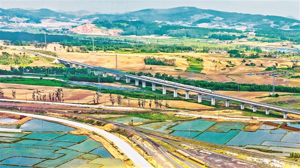 高鐵網(wǎng)將沿線六座城市串成線。原勇 本報(bào)記者 狄婕攝