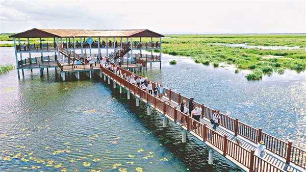 近日,寶清縣七星河國家級自然保護區(qū)濕地內(nèi)迎來大批游客,一望無際的濕地和葦塘讓游客心曠神怡。游客登上觀鳥臺,俯瞰濕地,夕陽下大批的水鳥在七星河內(nèi)覓食嬉戲,“葦蕩連天碧,水鳥漫云空”,一幅人與自然和諧共生的真實寫照。