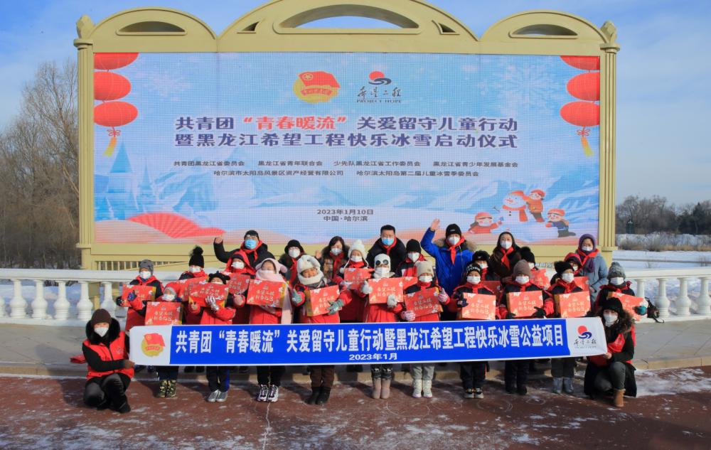黑龍江經(jīng)濟(jì)網(wǎng)訊(于佳弘 記者祝東)1月10日上午,共青團(tuán)“青春暖流”關(guān)愛(ài)留守兒童行動(dòng)暨黑龍江希望工程快樂(lè)冰雪公益項(xiàng)目啟動(dòng)儀式在哈爾濱太陽(yáng)島國(guó)際雪博會(huì)舉行。活動(dòng)由共青團(tuán)黑龍江省委員會(huì)指導(dǎo),由黑龍江省青年聯(lián)合會(huì)、少先隊(duì)黑龍江省工作委員會(huì)、黑龍江省青少年發(fā)展基金會(huì)聯(lián)合舉辦,并得到了太陽(yáng)島風(fēng)景區(qū)資產(chǎn)經(jīng)營(yíng)有限公司、哈爾濱太陽(yáng)島第二屆兒童冰雪季組委會(huì)、哈爾濱市松北前進(jìn)小學(xué)校的大力支持。共青團(tuán)黑龍江省委副書(shū)記夏天、哈爾濱市太陽(yáng)島風(fēng)景區(qū)資產(chǎn)有限公司黨委書(shū)記、董事長(zhǎng)趙經(jīng)濤和黑龍江省青聯(lián)、黑龍江省少工委、黑龍江省青基會(huì)以及來(lái)自哈爾濱市松北區(qū)前進(jìn)小學(xué)的留守兒童和黑龍江大學(xué)的留學(xué)生,共70余人參與了活動(dòng)。
