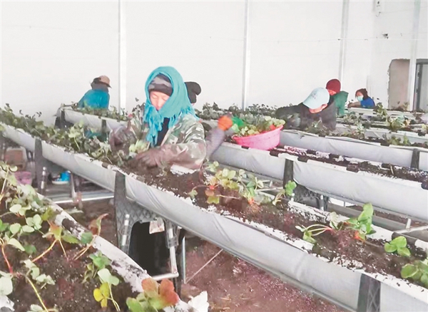 “早上7點(diǎn)去,下午4點(diǎn)多就收工回來(lái)了,離家近,每天能賺150元,挺好的。”張金香說(shuō)。走進(jìn)產(chǎn)業(yè)園的草莓溫室大棚,如張金香一般來(lái)自谷大村的女工們正認(rèn)真地進(jìn)行著手中的工作。移栽、覆膜、澆水……14萬(wàn)株蘊(yùn)含著期待與希望的草莓秧苗正在茁壯成長(zhǎng)。