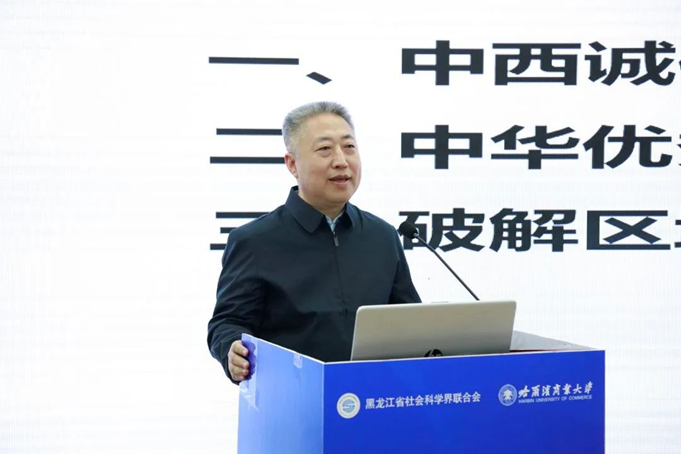 哈爾濱商業(yè)大學黨委書記孫先民致歡迎辭。他介紹了學校70余年辦學治校積累的豐富經(jīng)驗和豐碩成果,指出學校充分發(fā)揮學科專業(yè)研究方向及特色優(yōu)勢,在服務社會信用體系構建、助力社會信用環(huán)境和營商環(huán)境優(yōu)化、服務新時代文明實踐、帶動全社會道德素質(zhì)和文明程度提升、服務商業(yè)模式實踐與創(chuàng)新、切實擔負起服務國家戰(zhàn)略、助力龍江發(fā)展的時代使命等方面取得了成果成效。