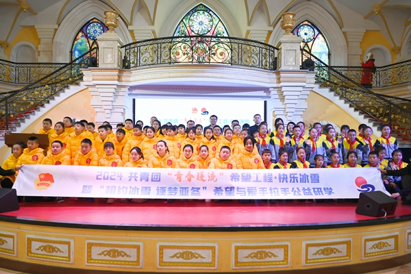 黑龍江經(jīng)濟(jì)網(wǎng)訊(于佳弘 記者祝東)1月15日,2024共青團(tuán)“青春暖流”希望工程·快樂(lè)冰雪暨“相約冰雪 逐夢(mèng)亞冬”希望與愛(ài)手拉手公益研學(xué)正式開(kāi)營(yíng)。活動(dòng)由中國(guó)青少年發(fā)展基金會(huì)、共青團(tuán)黑龍江省委員會(huì)指導(dǎo),黑龍江省青少年發(fā)展基金會(huì)、黑龍江省學(xué)生聯(lián)合會(huì)、少先隊(duì)黑龍江省工作委員會(huì)主辦,并得到了哈爾濱工程大學(xué)、哈爾濱工業(yè)大學(xué)教育發(fā)展基金會(huì)、黑龍江飛鶴乳業(yè)有限公司、哈爾濱伏爾加莊園文化旅游有限公司、哈爾濱市太陽(yáng)島風(fēng)景區(qū)資產(chǎn)有限公司、黑龍江龍塔國(guó)際旅游有限公司、聯(lián)想(北京)有限公司、黑龍江省明悅網(wǎng)絡(luò)科技有限公司的大力支持。共青團(tuán)黑龍江省委副書(shū)記代東力,黑龍江省飛鶴慈善基金會(huì)秘書(shū)長(zhǎng)蘭天偉,哈爾濱工程大學(xué)團(tuán)委書(shū)記、本科生院黨委書(shū)記郝琛,共青團(tuán)雙鴨山市委書(shū)記薛麗偉,黑龍江省青少年發(fā)展基金會(huì)理事長(zhǎng)杜晶等領(lǐng)導(dǎo)嘉賓出席活動(dòng),雙鴨山“小黃鴨”與帶隊(duì)教師、公安干警、龍江小記者、哈爾濱學(xué)生代表共計(jì)百余人參加活動(dòng)。