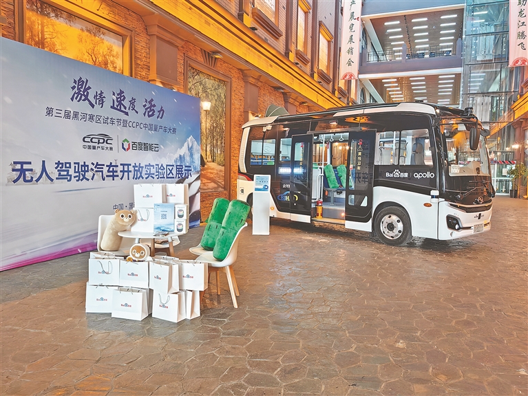 百度自動(dòng)駕駛公交巴士亮相黑河寒區(qū)試車節(jié)。 圖片由受訪者提供
