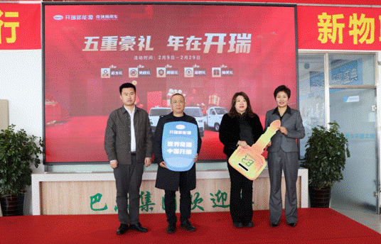 開(kāi)瑞新能源汽車(chē)有限公司北部戰(zhàn)區(qū)總監(jiān)王培山向巴爾新能源總經(jīng)理徐娟頒發(fā)省總代理授權(quán)書(shū)