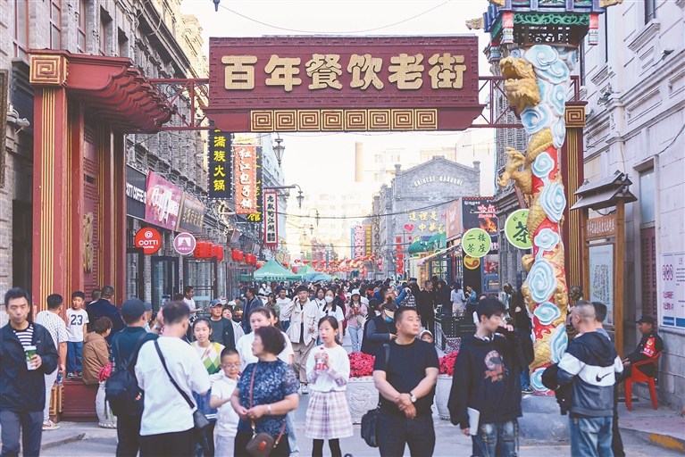 五一假期,哈爾濱市民和游客們紛紛涌向道外區(qū)中華巴洛克百年老街。