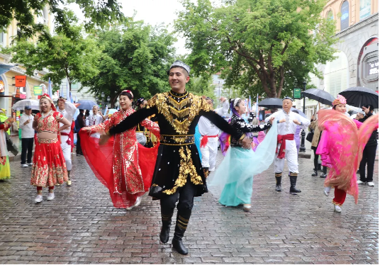 活動中,“中央大街巡游會場”與“人民廣場百人共舞分會場”相繼啟動,一系列融合傳統(tǒng)文化與現(xiàn)代元素的表演精彩紛呈。