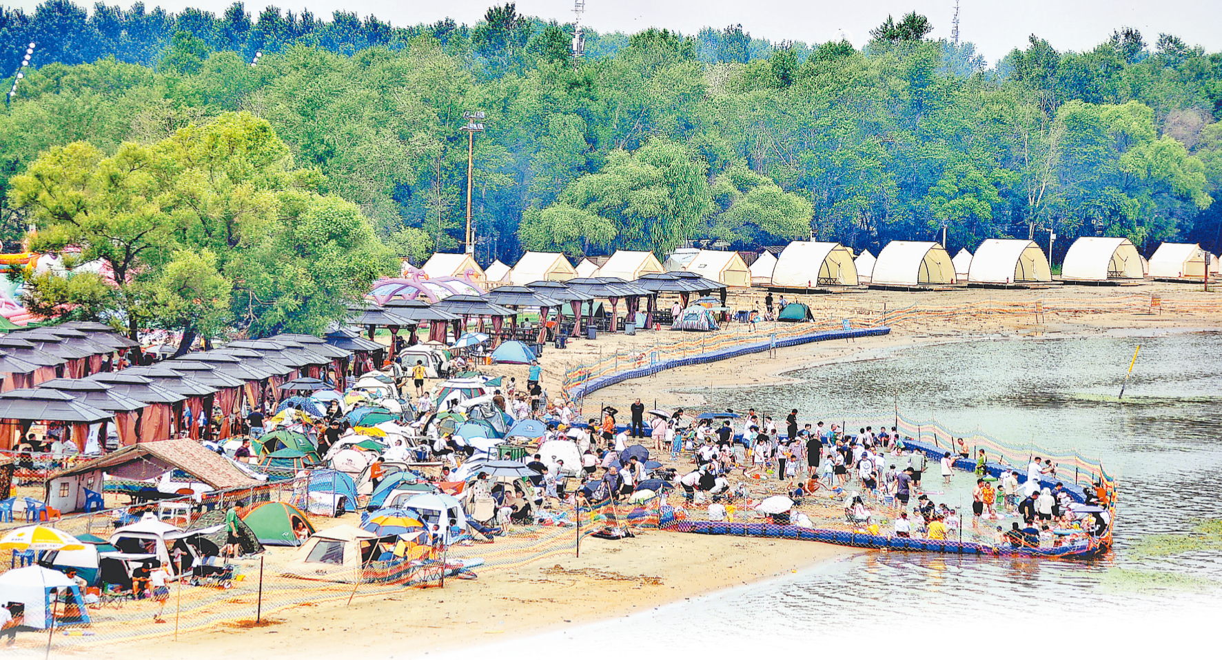 日前,哈爾濱市江北公路大橋附近的公益沙灘浴場(chǎng)內(nèi),許多市民帶著孩子在戲水納涼。這處沙灘浴場(chǎng)面積有數(shù)百平方米,水中最深處只有半米多,周圍設(shè)置了隔離帶、安全網(wǎng)。孩子們盡情玩樂(lè),有的在學(xué)游泳、有的玩水槍、有的在堆沙子、有的在挖“水渠”,叫喊聲、歡笑聲不絕于耳。