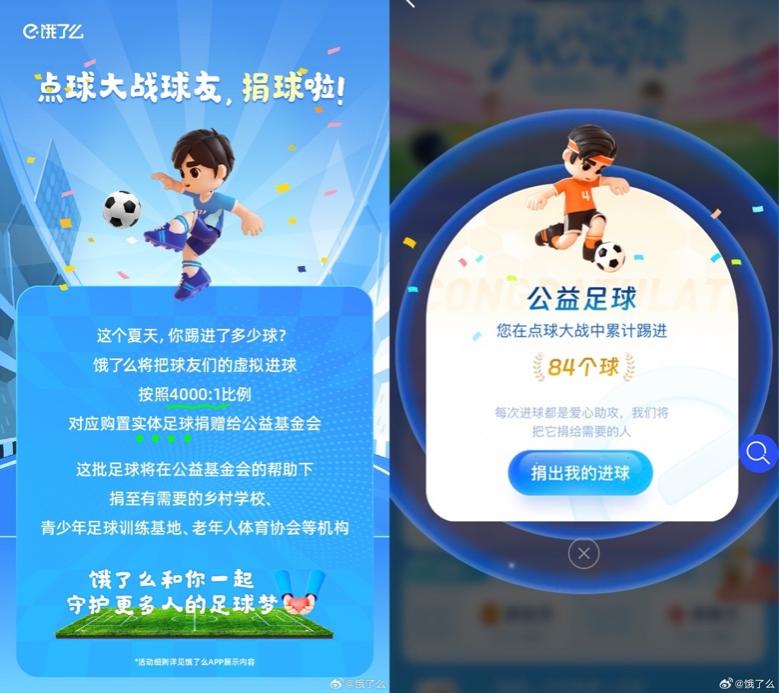 在西班牙隊球迷的歡呼聲中歐洲杯正式落幕,隨之結(jié)束的還有餓了么足球季活動。7月15日當(dāng)天,餓了么官宣上線足球捐贈活動,所有用戶都可以選擇捐贈這一個月來在“點球大戰(zhàn)”游戲中累積的虛擬進球,餓了么將聯(lián)合公益基金會,按照比例對應(yīng)捐贈實物足球給到有需要的鄉(xiāng)村學(xué)校、青少年足球訓(xùn)練基地、老年人體育協(xié)會等,和用戶一起把今夏開心傳遞給更多人。