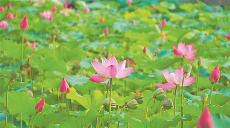 在北大荒集團八五九農場有限公司灌渠附近,眾人發(fā)現(xiàn)了一片美若仙境的荷花泡,粉色的花朵連成一片,遠遠望去燦若朝霞,香味彌漫周圍。荷花池中,綠葉如蓋,朵朵荷花從中脫穎而出,花瓣層層疊疊,錯落有致,宛如精心雕琢的藝術品,每一朵都蘊含著大自然的鬼斧神工。