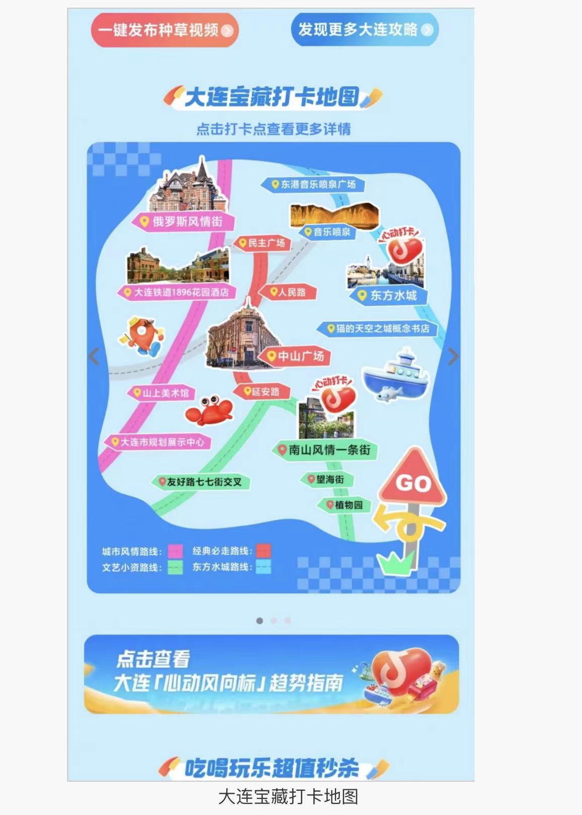 線上推廣方面,大連市文化和旅游局與抖音生活服務(wù)共同搭建“心動(dòng)大連”話題頁(yè)與“活動(dòng)主會(huì)場(chǎng)”頁(yè)面,聚合達(dá)人、用戶、媒體的多樣化內(nèi)容以及本地精選文旅商家,集中推廣大連文旅資源和特色消費(fèi)場(chǎng)景。費(fèi)啟鳴、婁藝瀟、喜劇人大鎖等多位大連籍明星藝人,受邀作為“心動(dòng)大連推薦官”為大連文旅打Call。活動(dòng)將發(fā)起“心動(dòng)直播周”促消費(fèi)專場(chǎng)直播,設(shè)定周播主題,宣傳城市吃喝玩樂(lè)特色內(nèi)容?;顒?dòng)還將結(jié)合大連文旅特色以及中秋節(jié)點(diǎn),發(fā)起“海邊的大連有多浪漫”“中秋來(lái)大連實(shí)現(xiàn)海鮮自由”等熱門話題造勢(shì)。(抖音)
