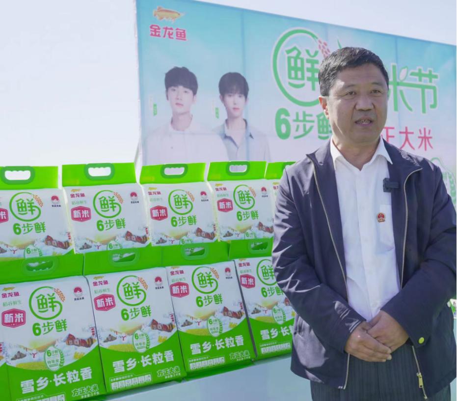 電商直播是今年新米節(jié)上的重頭戲,稻田邊將直播間搬到了現(xiàn)場(chǎng)。張清泉主任面向直播鏡頭,向觀眾們分享方正縣如何搶抓機(jī)遇、整合農(nóng)產(chǎn)品資源帶動(dòng)農(nóng)民增收致富的故事,與觀眾們分享2024年第一把長粒香新米。談到方正,從地理環(huán)境、產(chǎn)業(yè)特色、產(chǎn)地優(yōu)勢(shì)等方面為觀眾們?cè)敿?xì)介紹了雪鄉(xiāng)長粒香方正大米如何通過金龍魚采用的稻谷“6步鮮米精控技術(shù)”實(shí)現(xiàn)從大米到鮮米的跨越。